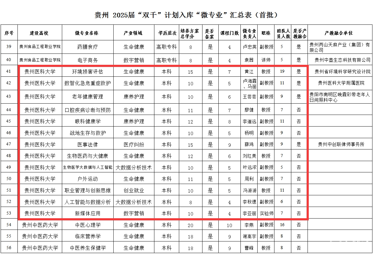 永利官网2023年底启动微专业建设,2024年9月进行首批微专业招生。目前已有521名学生完成微专业课程学习并获得结业证书。建设过程中,学校科学布局,突出特色,采用小班制教学模式,涵盖了人工智能新兴领域、大健康产业升级、生命健康、社会服务四大类,精准对接市场需求。在专业建设方面,生物医学大数据与人工智能、环境损害评估、数智化急危重症救护等微专业,通过与校外企事业单位合作,以产教融合的模式推进建设。课程设置多元化,用“理论+实践”,线上线下相结合的混合式教学模式,以“生物医学大数据与人工智能”微专业为例,设置大数据分析、Python医学数据分析、生物医学信号与图像处理等课程,注重培养学生实际操作和分析能力。在师资队伍建设方面注重学科交叉融合,“环境损害评估”微专业与贵州省环境科学研究设计院,共同开发污染物溯源与控制、环境风险评估等课程,组织学生到省内外开展游学活动。“老年健康管理”微专业则与市内企业晚霞彩带老年人日间照料中心合作,采用“线上+线下”相结合的方式开展《医院经营与管理》微专业课程的理论教学和社会实践活动,通过校外专家参与授课,将实际案例引入课堂,使学生能够接触到行业前沿技术和实践经验,深度开展产教融合。