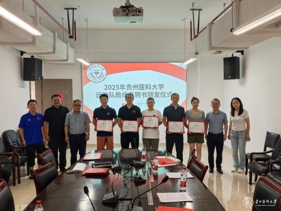 曾柱为竞聘成功的教练员颁发聘书并表示祝贺。他指出,作为医科类高校,要充分发挥医学专业优势,打造特色体育育人体系;要深化“体医融合”,将运动与医学相结合,构建具有贵医特色的训练模式;要加强跨学科协作,与基础医学院等开展科研合作;要响应“健康中国”战略,通过高水平运动队建设带动全校体育教育工作。他还特别强调,要总结张少琴等优秀运动员的培养经验,实现竞技成绩与专业学习的双赢发展。