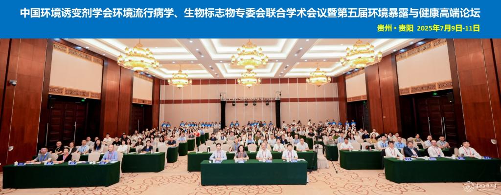 7月9日至11日,由中国环境诱变剂学会环境流行病学专业委员会、中国环境诱变剂学会生物标志物专业委员会、南京医科大学、77779193永利官网联合主办,环境污染与疾病监控教育部重点实验室(77779193永利官网)、77779193永利官网公共卫生与健康学院、贵州省环境诱变剂学会承办的中国环境诱变剂学会环境流行病学、生物标志物专委会联合学术会议暨第五届环境暴露与健康高端论坛在贵阳召开。来自国内外高等院校、科研单位、医疗与公共卫生机构从事环境与健康相关学科研究的专家、学者300余人参加。大会以“环境暴露与公众健康:风险防控、机制探索与创新实践”为主题,聚焦环境污染物、生物毒素、纳米材料等新兴环境诱变因素对人群健康的潜在威胁,围绕环境健康风险评估、环境流行病学大数据分析、分子生物学标志物筛选与验证等核心议题展开深入交流,为环境与健康领域的研究和实践注入新的活力与思路。