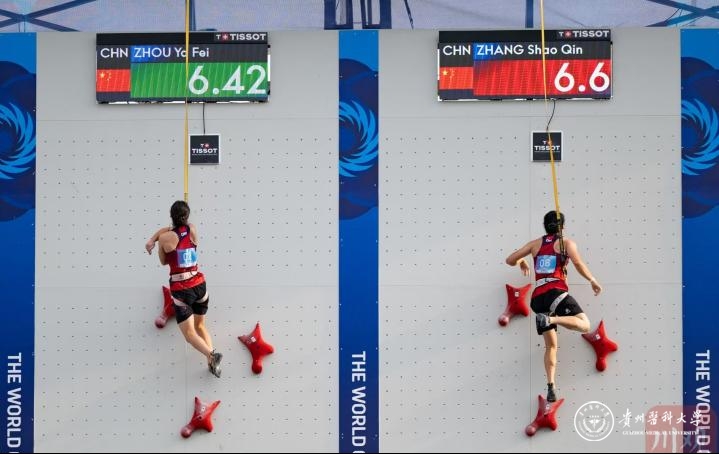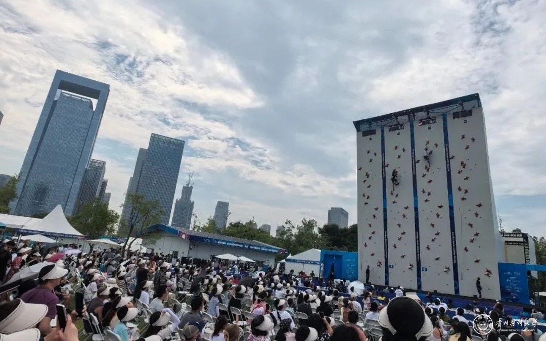 8月16日,在成都天府公园举行的第十二届世界运动会攀岩比赛最后一个比赛日,贵医学子张少琴与队友覃于妹默契配合,在双人女子攀岩速度接力赛中奋勇拼搏,最终以13秒76的成绩斩获亚军,为中国代表团再添一枚宝贵奖牌,也为学校争得了荣誉。