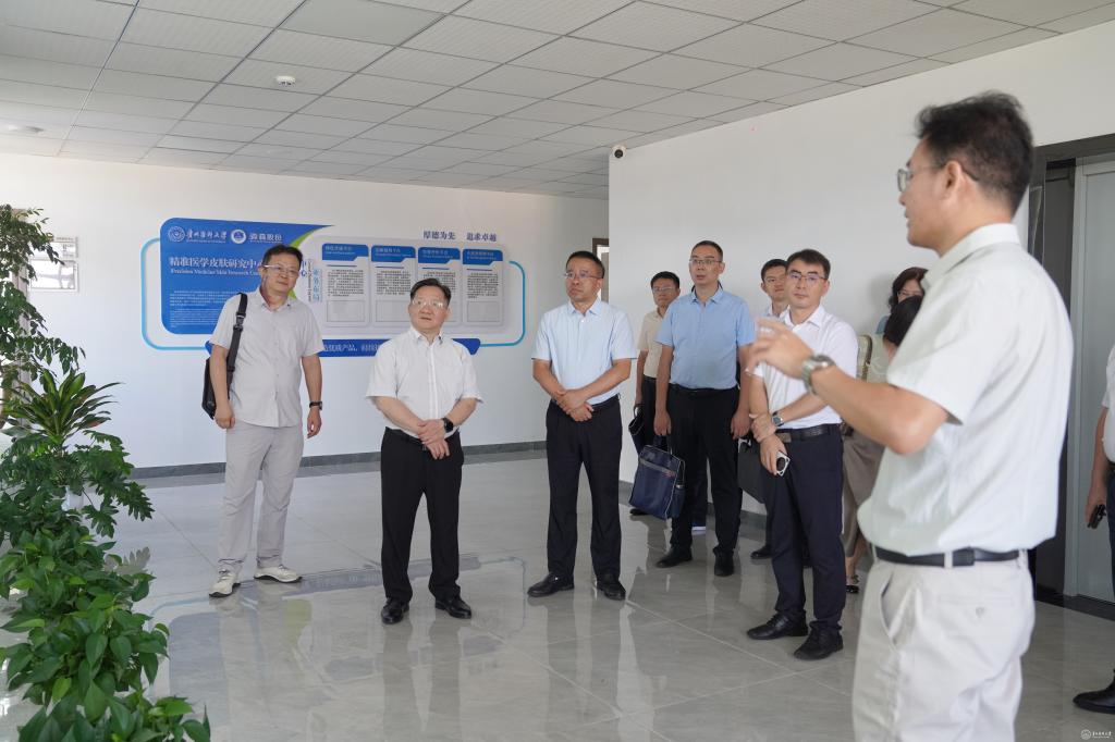 座谈会前,广西医科大学一行乘坐校园观光车参观了学校云漫湖校区、组织工程干细胞中心、大学科技园及精准医学皮肤研究中心。