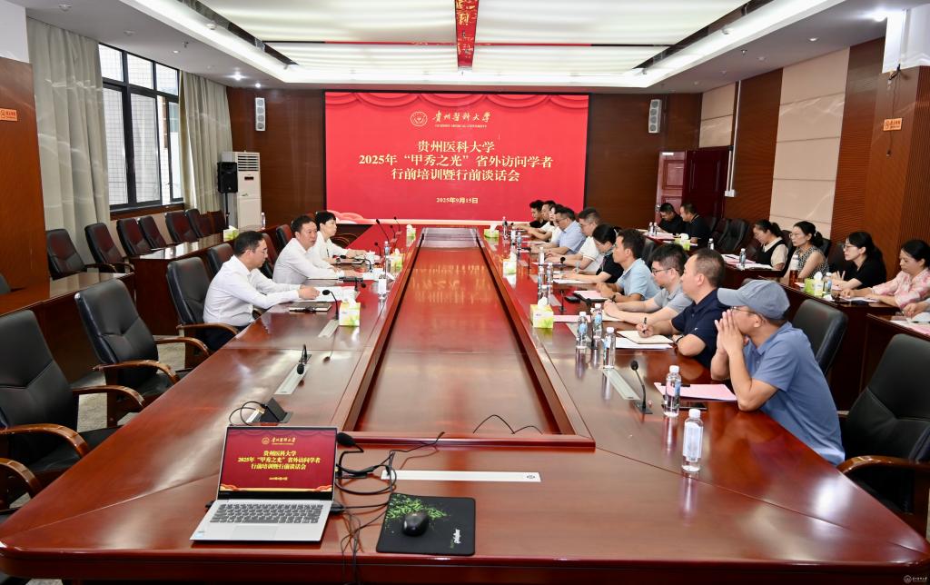 9月15日,永利官网2025年“甲秀之光”省外访问学者行前培训暨行前谈话会在北京路校区行政楼6楼连廊会议室召开,校党委书记汤磊,附属医院党委书记李海洋出席,校党委副书记张洁主持。学校、天产中心及附属医院入选贵州省第三批“甲秀之光”省外访问学者及学校党委组织部、天产中心综合办公室和附属医院组织人事处相关人员参会。