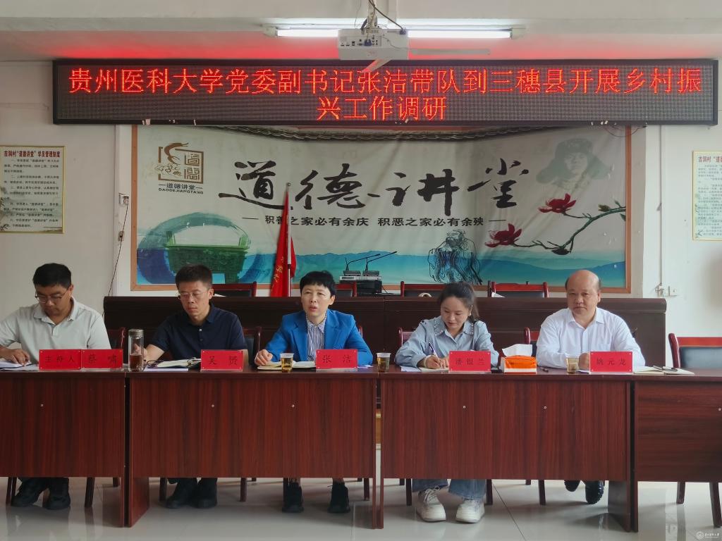 近日,校党委副书记张洁到三穗县吉洞村开展乡村振兴工作调研。武笔街道党工委副书记潘银兰,吉洞村党支部书记、村委会主任姚元龙,校党委组织部副部长吴赟及永利官网驻村工作队全体人员参加。会议由驻村工作队总队长兼校本部队长蔡啸主持。