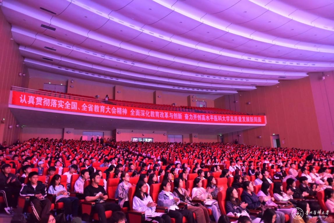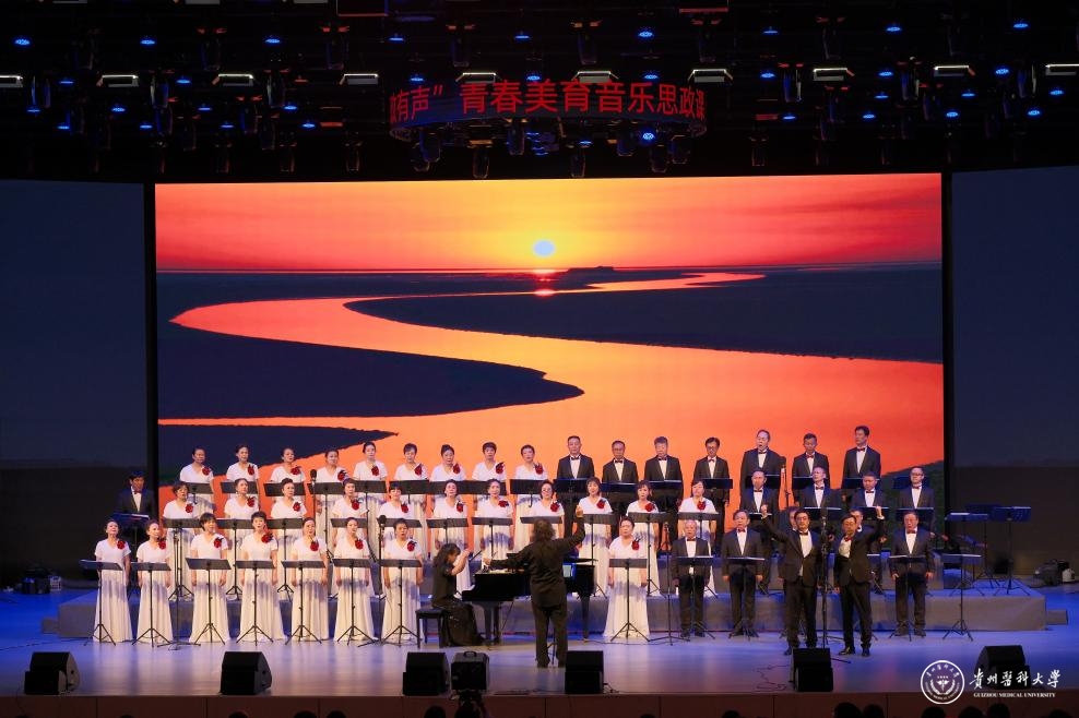 育人新程:美育思政赋能卓越成长。本场讲述式合唱音乐会以“音乐+思政”的创新模式,将美育课堂融入历史叙事,让艺术表达承载信仰力量。通过情景交融的讲述与合唱,使那段烽火岁月的精神能量跨越时空,在旋律与故事中焕发直抵人心的感染力。这场视听盛宴既是美育与思政教育深度融合的生动实践,也是一次深刻的精神洗礼,引导医学学子在艺术熏陶中铭记历史、坚定志向,成长为兼具专业深度、人文温度与家国情怀的时代新人。
