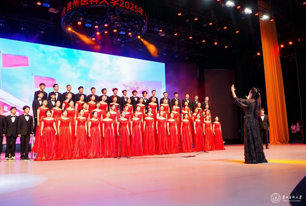 第三篇章“锦绣未来·梦想燃”展望美好明天。管乐团奏响《东方红》《歌唱祖国》经典曲目,激发现场师生的强烈共鸣;由16名硕士和3名博士组成的硕博团带来舞蹈《健康一起来,活力向未来》,展现了贵医青年追求健康、奋发向上的精神风貌。晚会在全场大合唱《爱我中华》的激昂旋律中圆满落下帷幕。