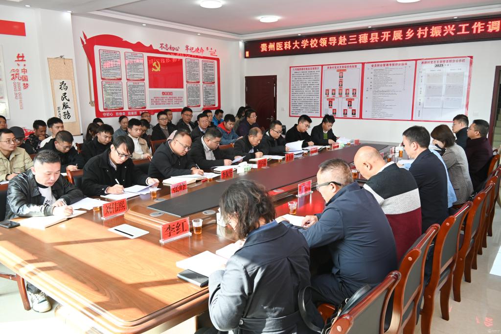 汤磊围绕推进驻村工作落地见效明确提出“三个聚焦”工作方向:一是聚焦党建强基,推动基层党建与乡村治理深度融合,切实助力提升村党组织凝聚力和服务群众能力。二是聚焦产业赋能,搭建科研转化与产业对接桥梁,推动学校重点实验室、中药材种植基地等平台资源下沉,组织团队精准对接帮扶村需求,重点助推特色农产品深加工、道地药材种植等产业项目落地,激活乡村经济“造血”功能。三是聚焦长效发展,鼓励各驻村队员所在单位与帮扶村加深互动。学校将广泛动员各级单位、天产中心、附属医院参与消费帮扶、技术支持,构建“学校统筹、单位联动、全员参与”的乡村振兴格局。