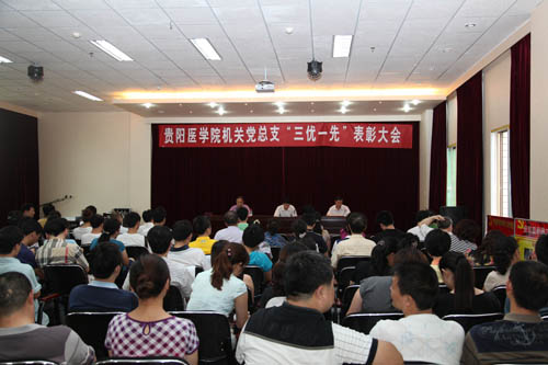 2011年7月8日下午,贵阳医学院机关党总支在综合楼12楼职工活动室,召开了党总支全体党员参加的“三优一先”活动评比表彰大会。校党委副书记、纪委书记余安平同志及校党委组织部部长陈祖云同志出席了会议。