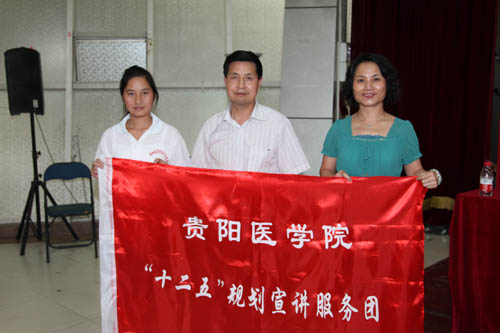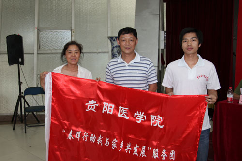 在启动仪式上,校团委书记张红霞对今年的暑期“三下乡”社会实践工作安排情况进行了介绍。今年的社会实践活动紧紧围绕“永远跟党走 青春献祖国”的主题开展,继续采取点、面结合的方式,以点带面组织开展既有深度、又有广度的系列活动。院团委共组织九支分队在贵定、遵义、松桃等地开展以“十二五”规划宣讲、“追寻红色足迹”等为内容为期半个月的科技文化卫生“三下乡”社会活动。
