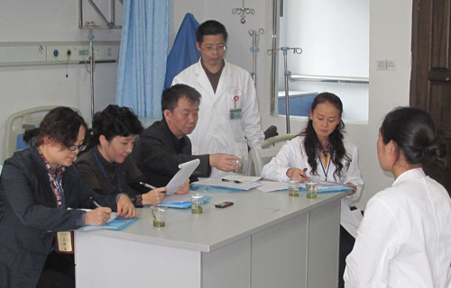 本次考核由罗俊副院长任考核组长,由受检单位内外妇儿科各抽派一名专家组成四个检查小组,第一、第二临床医学院和第二、第三附属医院分别按实习学生总数的30%和50%抽查,内容包括病历书写、问诊、查房、体格检查、基本操作等。