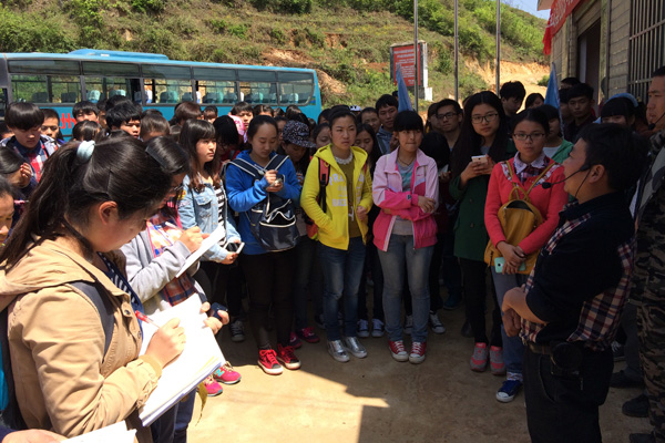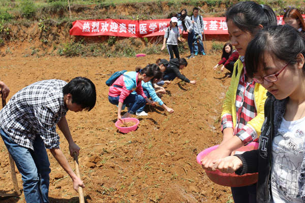 4月12日,永利官网社会科学部组织师生到贵州省平坝县十字回族苗族乡开展社会实践活动,参加社会实践活动的有社会科学部副主任韩贞习,教研室负责人汪勇、王万江及4名专兼职青年教师,全校2013级各专业133名学生。十字乡党委委员金元伦、人社中心主任吴坤、党政办主任邓志贵、十字乡大院村生态中药材种植示范基地负责人张金华等热情接待了全体师生。