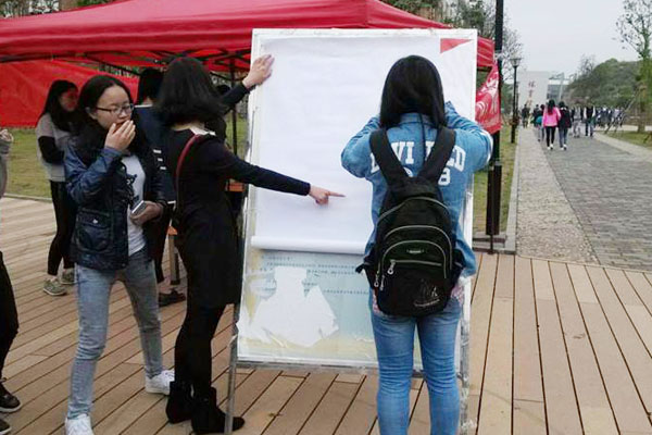 活动现场,在主持人介绍完活动规则后,各院系学生踊跃报名进行作答,工作人员给答对的同学发放奖票,参与者最后根据票数兑换相应的奖品。与此同时,同学们积极了解有关世界读书日的相关知识,并在建议栏上写出自己对图书馆建设的意见和建议。随着活动的进行,参与活动的同学越来越多,场面热闹非凡,使得“读书日”活动取得了圆满成功。