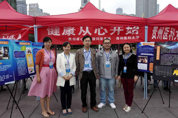 5月16日,贵州心理健康科普示范基地成员及医学人文学院医学心理学教研室教师,参加了于筑城广场举办的“2015年贵州省科技活动周启动仪式暨大型科普宣传活动”。