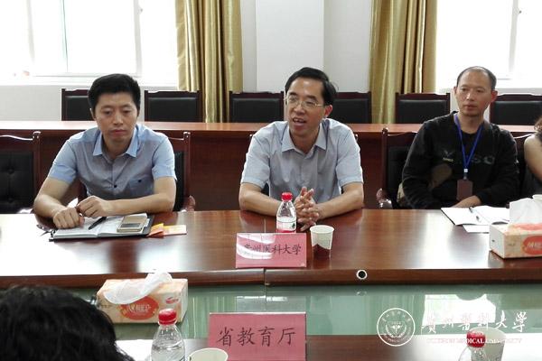 教育厅学生处邓生井处长介绍了全省高校“一站式”学生事务服务中心建设情况。他指出,建设“一站式”学生事务服务中心,目的是进一步巩固和扩大党的群众路线教育实践活动成果,践行“三严三实”、转变作风的具体体现;是增强高校阵地意识,加强高校意识形态领域工作的有力途径;是深化高等教育发展改革,培养创新创业人才目标的要求。三支部党员对永利官网积极转变作风,以学生需求为导向,率先建成“一站式”学生事务服务中心并授予全省高校“示范点”等工作给予高度评价,并针对学校建设发展中的一些问题提出建议意见。并表示在今后的工作中,要认真践行“三严三实”要求,进一步创新举措、换位思考,多深入基层学习取经、为基层单位服好务,为推动贵州教育事业加快发展、后发赶超作出应有贡献。