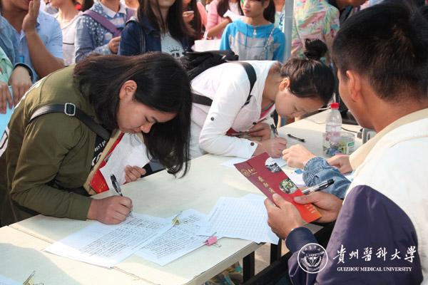 仁爱广场上,一顶顶充满温馨色调的帐篷,这是各院系的接待点。各院系独具匠心的迎新方式纷纷传递出温暖的气息,一条条“欢迎新同学”横幅标语,一个个风格各异的迎新宣传板,加上随处可见的迎新工作人员、学生干部、志愿者们以饱满的热情、细致耐心的服务为新同学及家长送上最贴心的关怀。学校工作人员亲切服务,详细解答学生和家长提出的各种问题,青年志愿者、学生干部热情地带领新同学进行信息登记、校园卡和宿舍钥匙发放等入学流程的办理。为给新生和家长提供全面周到的服务,各院系对前来报道的新生从到校接待,检查注册到安顿宿舍,每一个环节都得到了学长学姐们的悉心陪伴,在他们看来,“接过新同学的行李,我们都是贵医人”。