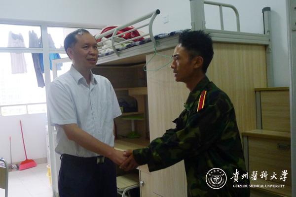9月7日下午,学校党委书记林昌虎在党委办公室副主任杨毅、麻醉学系党总支书记刘建华、副主任高鸿及辅导员周霁的陪同下亲临麻醉学系学生宿舍,看望慰问2015级潘志军同学。