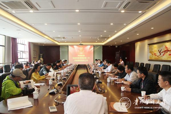 9月16日上午,贵州省人民政府参事调研组一行13人到永利官网就大健康发展工作进行调研。校党委书记林昌虎、副校长罗鹏、副校长黄亚励以及相关部门负责人出席调研座谈会。