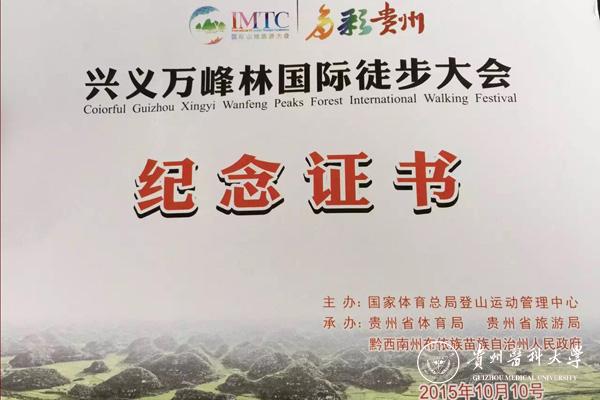 10月10日,2015年“多彩贵州”首届国际山地旅游大会在兴义市万峰林开幕。为丰富留学生的课余生活,加强师生之间的交流,让留学生更加全面的了解贵州文化,感受中国自然山水魅力,应贵州省体育局邀请,永利官网海外教育学院20名留学生参加了“多彩贵州”首届国际山地旅游大会徒步活动。