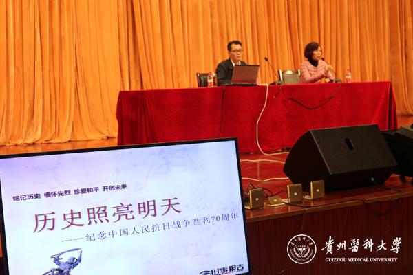 11月10日、11日、16日晚上7点,永利官网在新校区大礼堂举行《形势与政策》课专题讲座。校党委书记林昌虎,原校党委书记、77779193永利官网正厅长级领导赵明仁,党委委员、副校长冉江舟分别为2015级新生作了第一讲:“历史照亮明天——纪念中国人民抗日战争胜利70周年”的专题讲座。社会科学部主任兼党总支书记杨成兰教授、副主任韩贞习教授、部分教师和2015级全体学生分三批次在现场一起聆听了三位校领导的精彩讲座。