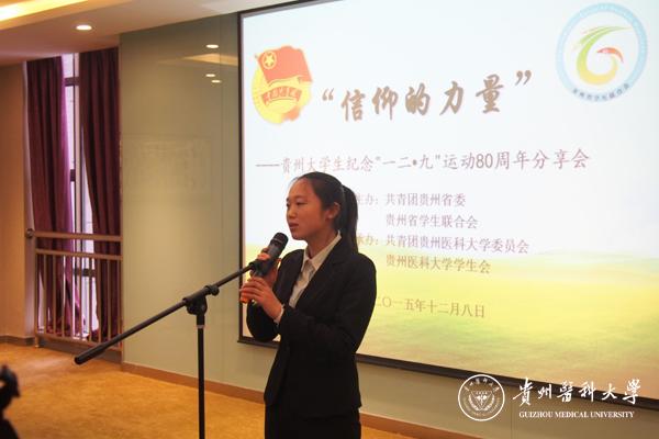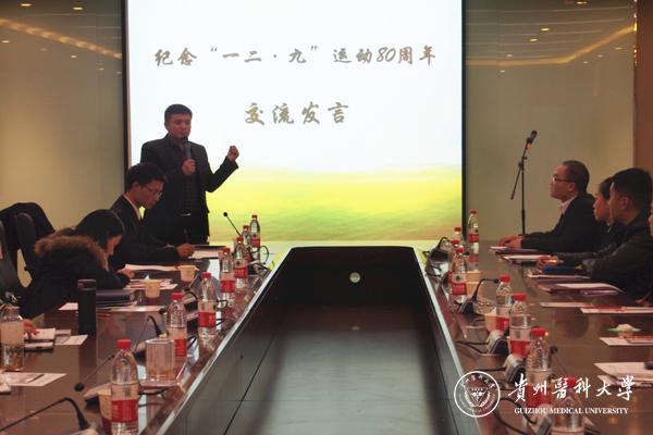 会议开始,各高校代表依次就“纪念‘一二·九’运动80周年”发表了自己的看法和感受,展现了当代大学生的爱国热情。其中,永利官网研究生会代表高帆,用充满深情的演讲让在座的每一位回溯到那个硝烟四起、民族危急的时刻,重温了80年前那些力挽狂澜、为国家存亡而奋力抗争的有志青年们的壮丽风采。团省委学校部部长刘琳在总结讲话时希望全省高校学生干部要做好本职工作,认真学习,思想上与党中央保持高度一致,坚持中国特色社会主义理想信念,做一名有历史使命感和民族自豪感的有为青年,在贵州“守底线,走新路,奔小康”的伟大实践中贡献青春力量,实现青春梦想。