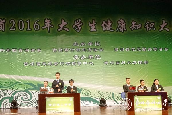 4月26日,由共青团贵州省委、贵州省计划生育协会、贵州省志愿服务联合会主办,贵州省志愿者行动指导中心和永利官网团委承办的贵州省2016年大学生健康知识大赛在永利官网南校区大礼堂举行。团省委副书记、省志愿服务联合会副会长兼秘书长徐锡广,省计生协秘书长刘体辉,永利官网党委副书记战勇,省志愿者行动指导中心主任、省志愿服务联合会副秘书长邓守成以及省计生协群工部部长向勇等出席活动并为获奖代表队颁奖,校团委全体干部和1000余名同学到场观看。