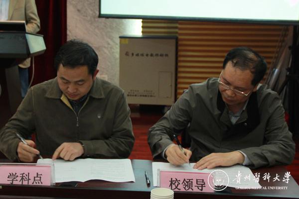 最后,林昌虎代表学校与基础医学院、临床医学院、口腔医学院、公共卫生学院、药学院、护理学院、麻醉学院、医学检验学院和中医学教研室九个二级学院及教研室负责人签订了学科评估工作责任书。
