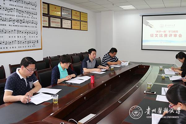 “两学一做”学习教育征文比赛全校评审会于6月14日早上10点在知雨楼三楼会议室召开。相关职能部门负责人担任评委。本次比赛设教工组和学生组,每组评出一等奖1名、二等奖2名、三等奖3名、优秀奖16名。机关党委杨毅获教工组一等奖;社科部王琴和临床医学院马燕萍获教工组二等奖;社科部陈许、护理学院杨英、机关党委李晓芬获教工组三等奖。医学影像学院龚池获学生组一等奖;医学检验学院李冰瑶、医学影像学院向晓睿获学生组二等奖;医学检验学院樊艳、公共卫生学院黄俊杰、医药卫生管理学院罗奎获学生组三等奖。一附院、三附院、食品安全学院、基础医学院、口腔医学院获优秀组织奖。