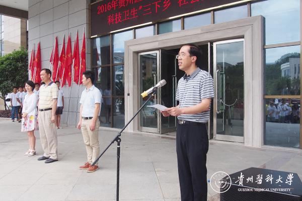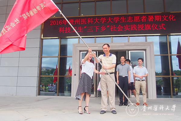 授旗仪式上,校团委副书记桂晓玲对2016年暑期“三下乡”社会实践工作安排情况进行了介绍,2016年社会实践活动紧紧围绕“青春献身十三五·携手共筑中国梦”的主题开展,继续采取点、面结合的方式,以点带面组织开展既有深度又有广度的系列活动。全校共组织国家级、省级、校级等18支服务队在贵州各地区开展以“精准扶贫”、“圆爱行动” 、“送医送药”等形式多样的科技文化卫生“三下乡”社会实践活动。