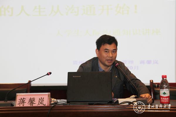 蒋馨岚以“大学生人际关系中的沟通要点”为题,结合自身工作经历从沟通的内涵、沟通的历史和历史中的沟通、有效的沟通技巧和如何成为同学中最受欢迎的人四个方面介绍了大学生人际关系中的沟通问题。讲座中,他阐明了大学生在人际交往中存在的困惑、沟通的原则和有效沟通的方法技巧。他通过经典案例分析,重点阐述沟通中倾听的重要性、倾听的技巧以及如何提高倾听的能力。他指出,对大学生而言,倾听在本质上就是渗透情感的过程。在讲座中还强调了微笑的魅力,他指出在大学生人际交往中“微笑是超越语言的交流、是生命的灵动”。他希望大学生在人际交往中要学会将心比心,学会换位思考。