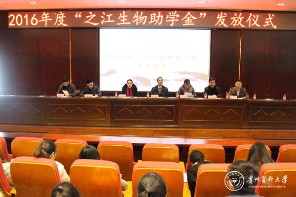 12月30日,永利官网基础医学院在南校区道德讲堂隆重举行“2016年度之江生物助学金”发放仪式。校党委副书记战勇、校长助理范彩屏出席,上海之江生物科技股份有限公司代表吴培、学生资助管理中心主任刘雪梅、基础医学院党委书记徐国强、副书记廖兴江、学生科科长汤武庆及全体辅导员和学生代表共计400余人参加仪式。发放仪式由廖兴江主持。