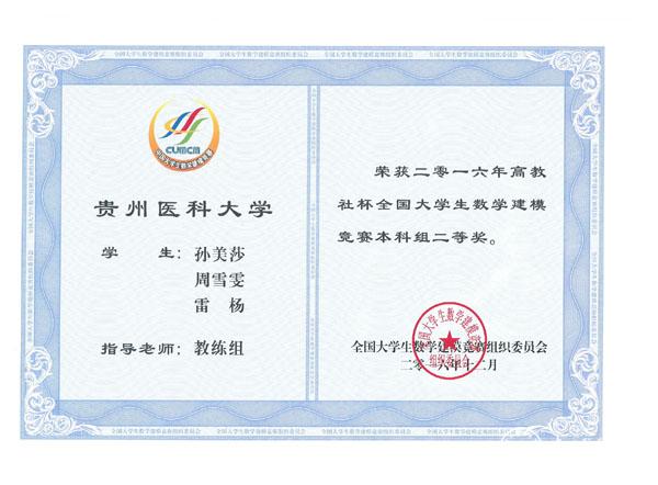 2016年,在全国大学生数学建模竞赛中,永利官网学子喜获佳绩,共荣获国家二等奖2项、贵州省一等奖7项、贵州省二等奖3项,贵州省三等奖2项。