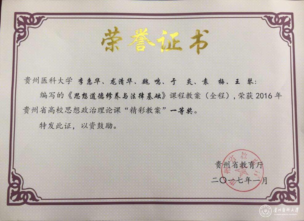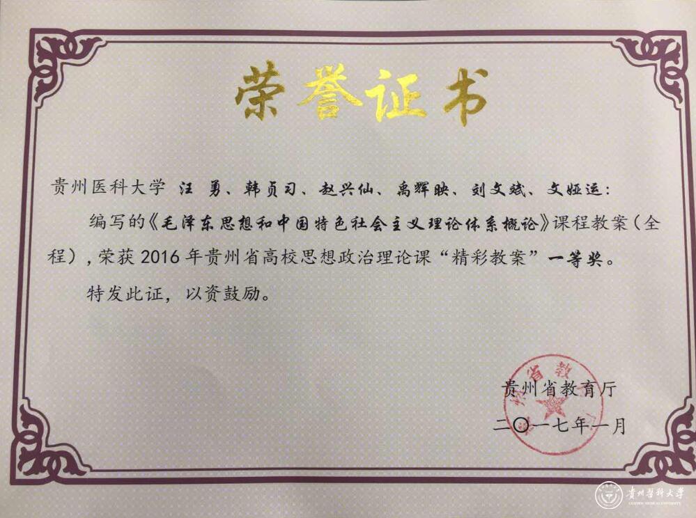 为进一步加强和改进高校思想政治理论课教育教学,推动教学内容和教学方法研究,提高教师整体科研水平和教学能力,贵州省教育厅决定在全省开展高校思想政治理论课“精彩教案”评选工作。永利官网党委、行政高度重视,马克思主义学院积极动员和组织申报,共推选11个项目参加评选。近日评选结果揭晓,根据《省教育厅关于公布全省高校思想政治理论课“精彩教案”评选结果的通知》(黔教社发〔2017〕41号),永利官网共有10个项目获奖,其中一等奖6项、二等奖1项、三等奖3项。获奖名单如下: