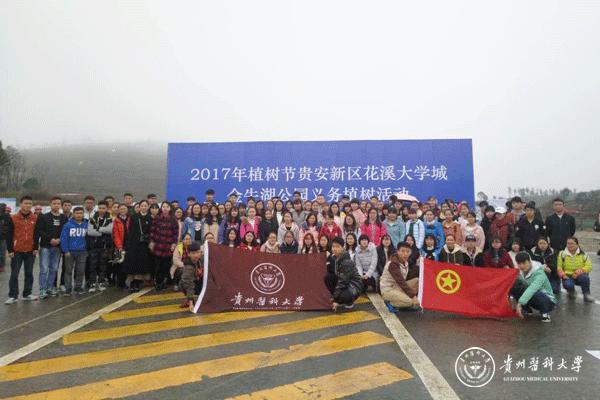 3月12日上午,由共青团贵州省委、贵安新区管委会主办的2017年义务植树活动在贵安新区花溪大学城金牛湖公园举行。永利官网100名学生代表在校团委副书记金晶、公共卫生学院分团委书记柴颖的带领下参加了活动。