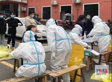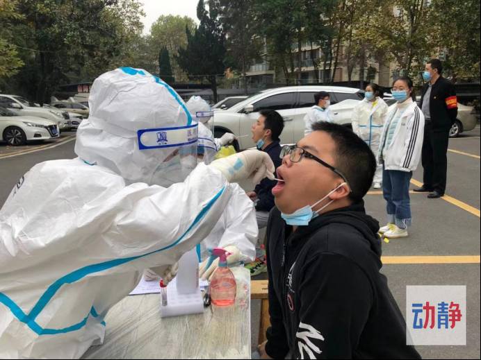 在学区内共设置2个采集单元,每个采集单元由两名采样人员、两名信息收集人员和三名学生志愿者组成,每个人分工明确,各个学生相隔一米线,社区工作人员及教师依次录入信息、医护人员采样。