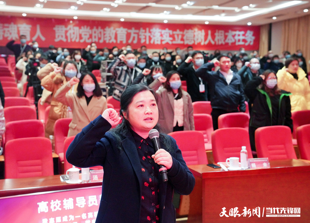 同时,杨未对辅导员职业、事业发展,提出了三点希望:一是心怀“国之大者”,培养更多能担大任能堪大用的栋梁之才。二是领悟并践行新发展理念,为贵州教育高质量发展贡献青春智慧。三是通过本次论坛和大赛进一步认清辅导员职业发展方向,在分享、聆听、交流、切磋中,形成思想碰撞,形成情感共鸣,共同促进提高,做到定位准、站位高、格局大、视野广。她勉励辅导员既要埋头干事,也要抬头看路,积极对标时代发展大势,坚定不移走专业化、专家化职业发展道路,以一以贯之的炙热初心、一往无前地阔步前行。