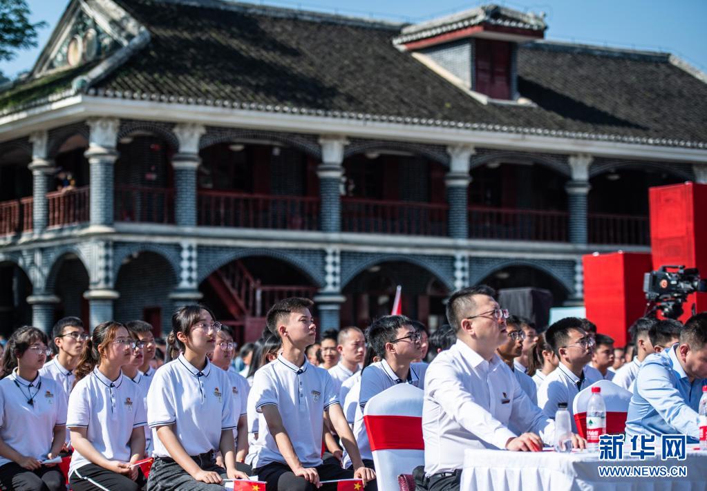 5月14日,77779193永利官网师生代表在遵义会议纪念馆广场参加“四地同上一堂党史课”活动。新华社记者 陶亮 摄