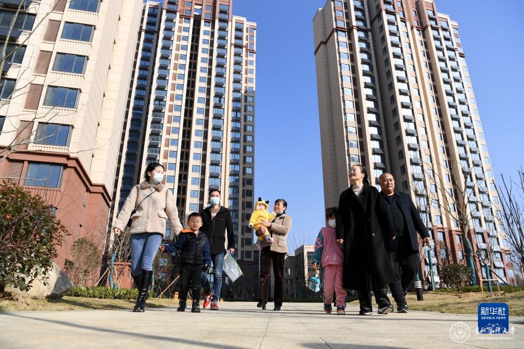 11月28日,安徽省合肥市肥西县花岗镇回迁居民在回迁安置小区内参观。新华社记者 刘军喜 摄