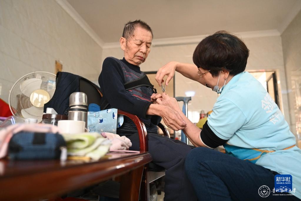 11月25日,长护险居家护理服务机构晋江邻鹿养老服务有限公司护理员林银花在福建晋江梅岭街道蔡厝社区的老人家里开展定期居家护理服务。新华社记者 林善传 摄
