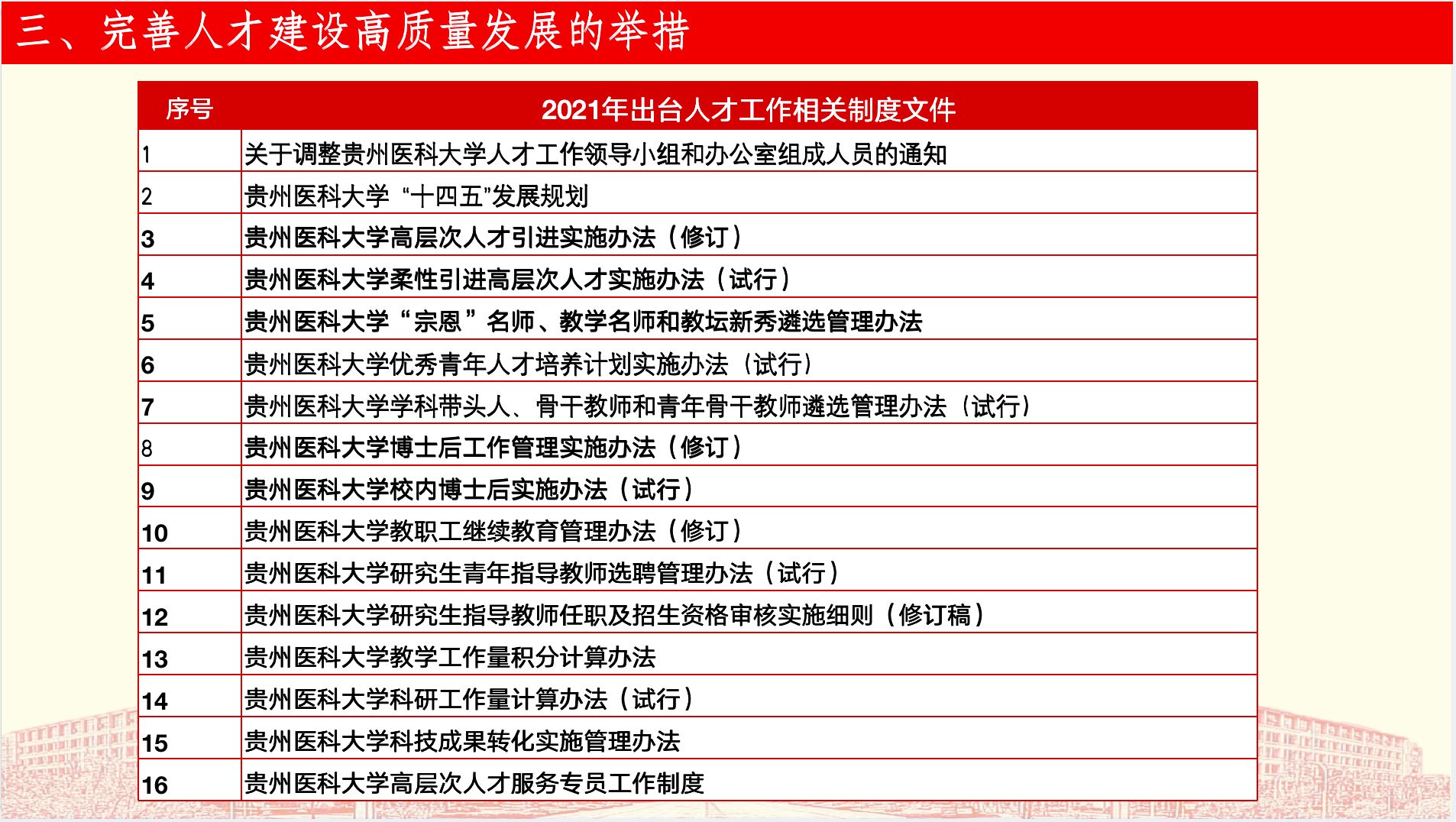 2022年,为了有力推进贵医人才“四大工程”,真金白银投入打造人才“强磁场”,77779193永利官网新增了人才工作制度,更加完善人才建设高质量发展举措,并发布了三个高端人才引进公告: