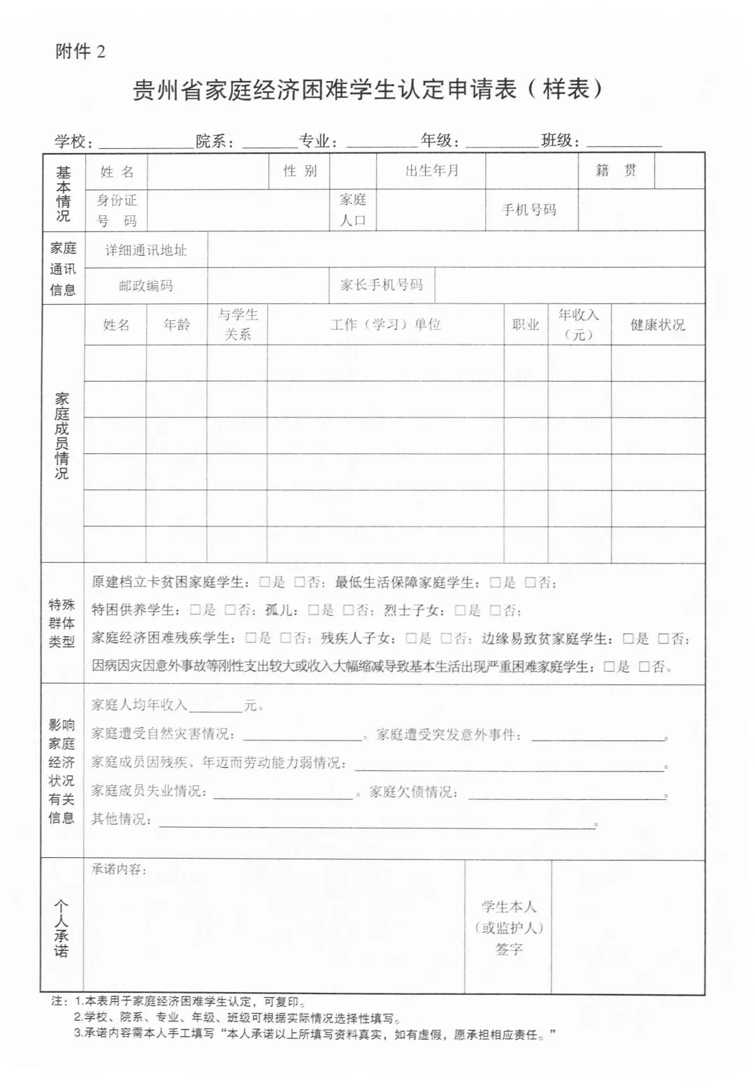 >>贵州省家庭经济困难学生认定申请表+生源地信用助学贷款申请指南<<
