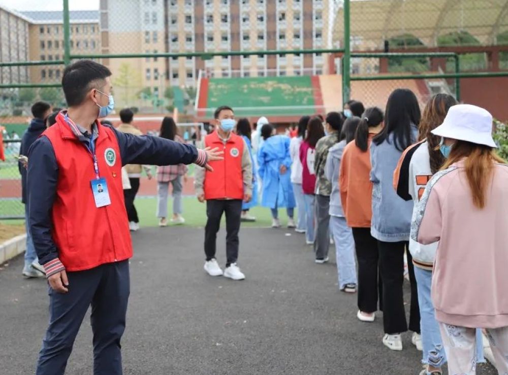 ▲贵州农业职业学院:志愿者组成核酸检测志愿服务突击队,在核酸检测过程中维护现场秩序、引导队伍行进、协助检测绑定,在全体师生齐心协力下,全员核酸检测工作开展有条不紊。