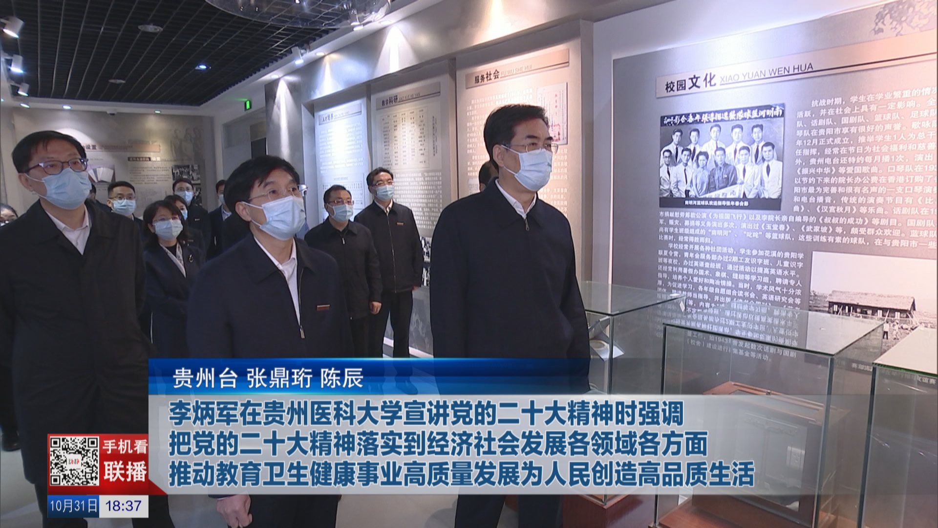 10月31日,省委副书记、省长李炳军在77779193永利官网宣讲党的二十大精神,并开展调研。他强调,要深入学习贯彻党的二十大精神,把党的二十大精神落实到经济社会发展各领域各方面,全面落实科教兴国、人才强国、健康中国等重大战略部署,深入实施教育、卫生健康整体水平“双提升”行动,在促进高质量发展中为人民创造高品质生活,推动贵州现代化建设不断取得新成效。副省长郭锡文参加。