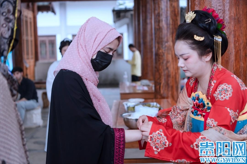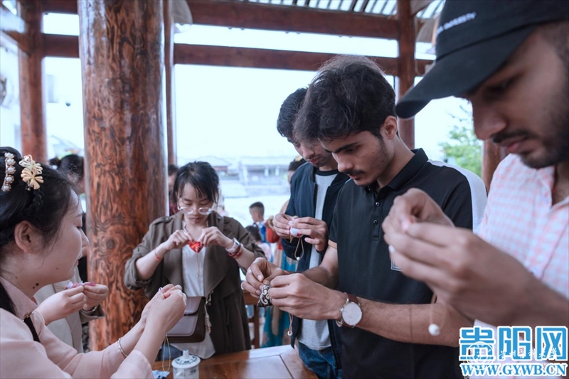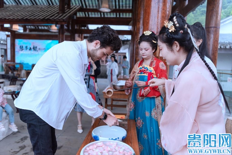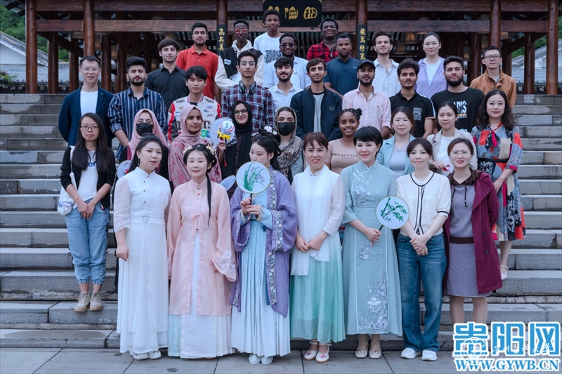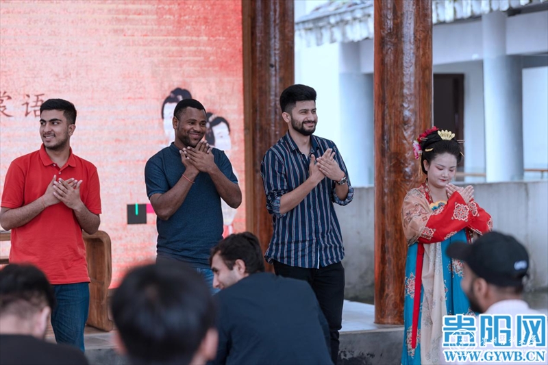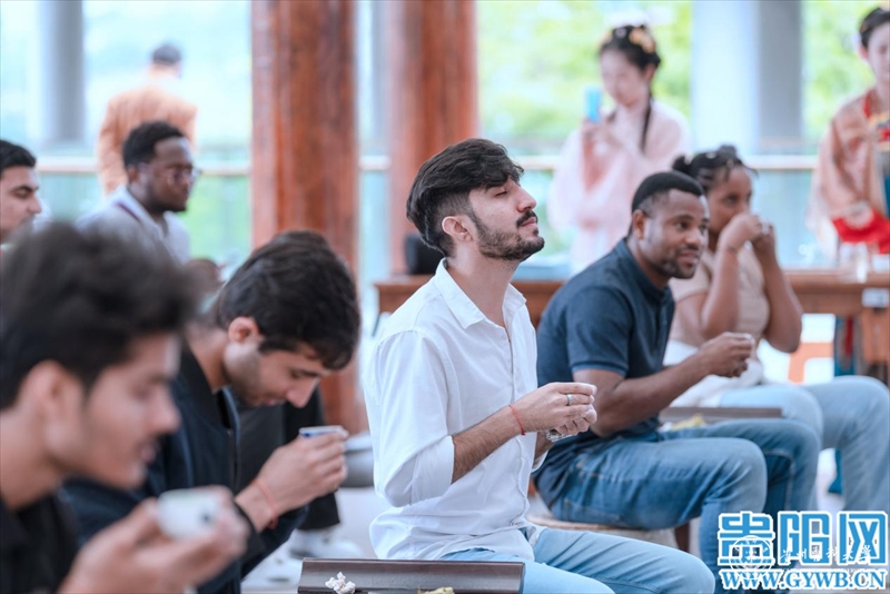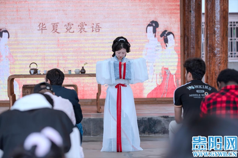 当天,留学生们不仅参观了孔子展览馆、儒学馆、六艺学宫、乡贤祠、阳明馆等,近距离走进中国传统文化;还通过“古琴雅韵流”“烹茶溪山畔”“闻香品茶意”“华夏霓裳语”等古琴、茶艺、汉服汉礼传统文化节目及互动,沉浸式体验中国礼乐文化、汉服文化和茶文化。