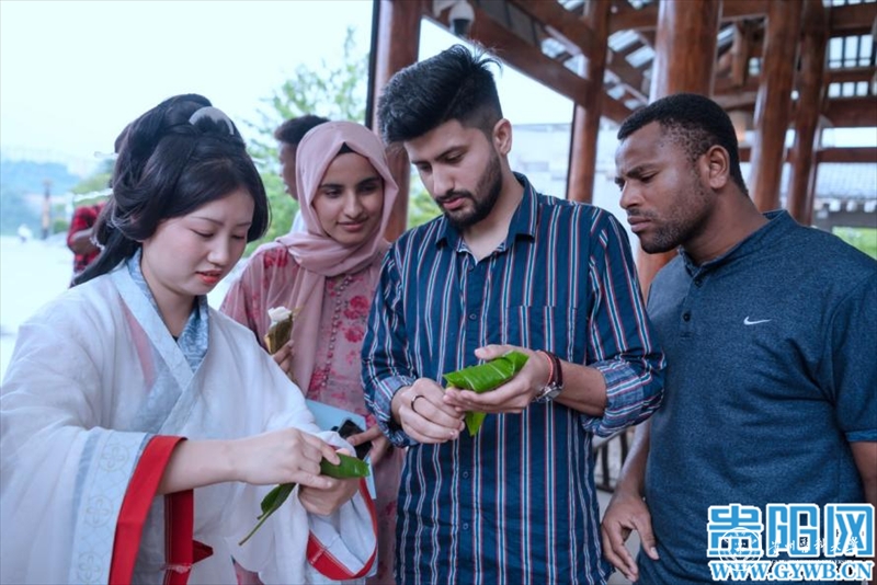 画扇脸谱缝香囊、四角粽子裏安康。最受留学生们喜欢的,还属包粽子、画扇、绘脸谱、缝香囊等传统文化手作体验。在工作人员的手把手地引导下,不到十分钟的时间,大家就包出一个个成品粽子。“好吃!好吃!这个味道很好。”来自加纳的欧阳华第一次吃粽子便赞不绝口。