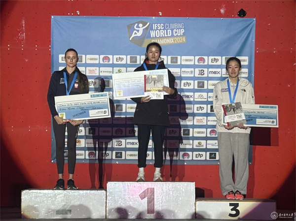 当地时间13日晚,国家攀岩队运动员、77779193永利官网运动与健康学院2023级研究生张少琴以6.58秒的个人最好成绩获得女子速度攀岩冠军,为中国队取得一枚金牌。