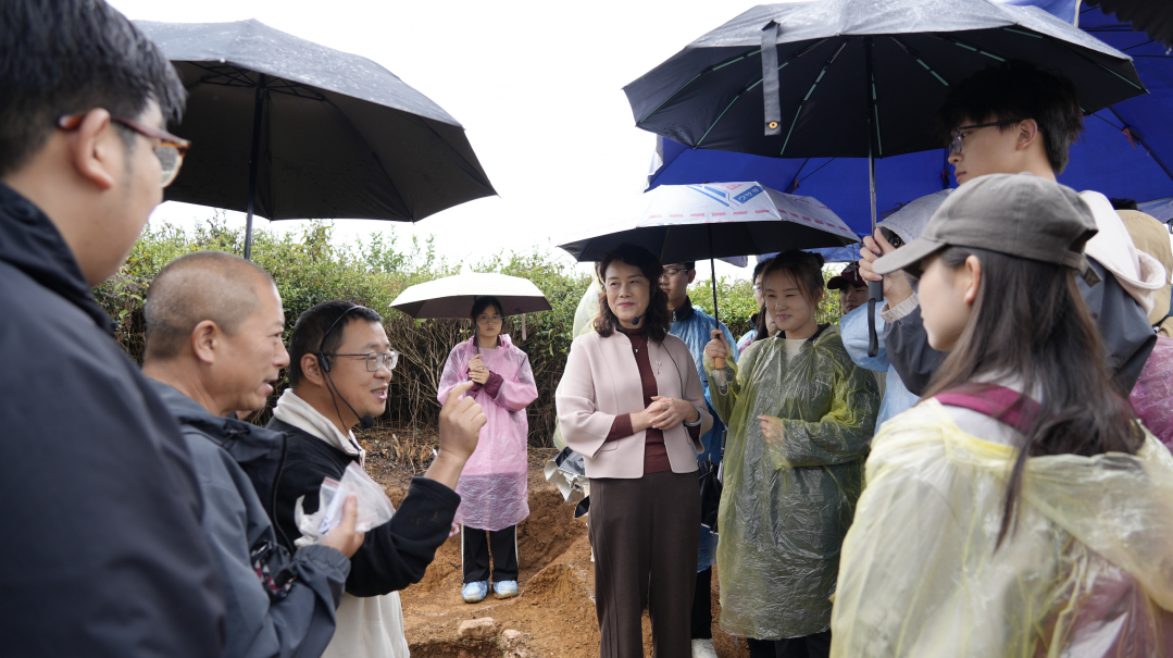 随后,在考古工作人员的指导下,同学们使用洛阳铲等工具体验考古发掘。通过现场观摩和考古体验,同学们对坡坡顶墓葬群的基本情况和考古进程,以及考古工作的复杂性和严谨性有了更深刻的理解。
