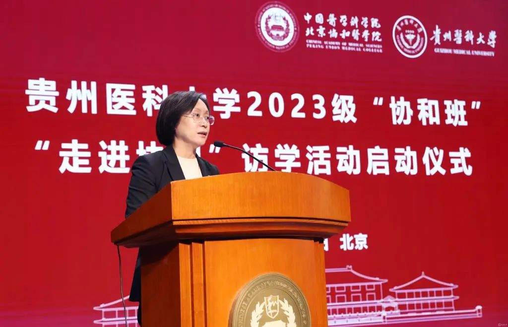 张勤强调,贵医校训“诚於己、忠于群、敬往思来”是遵从本心,行利民利国之道,协和校训“尊科学济人道”是尊重科学,建不断创新之理念,“协和班”学子选拔的是贵州省最优质的学苗,要继承和发扬两校的优秀品质和精神力量,坚持“高进”“优教”“严出”的精英教育理念,注重加强多学科融合教育。并希望同学们珍惜此次访学机会,追寻协和医学大家成长奋斗之路,感受医者的使命职责,夯实医学基础,注重综合素养提升,关注群体、种群、人类、众生乃至生态的健康,具有专业主义精神和济世为民之举。