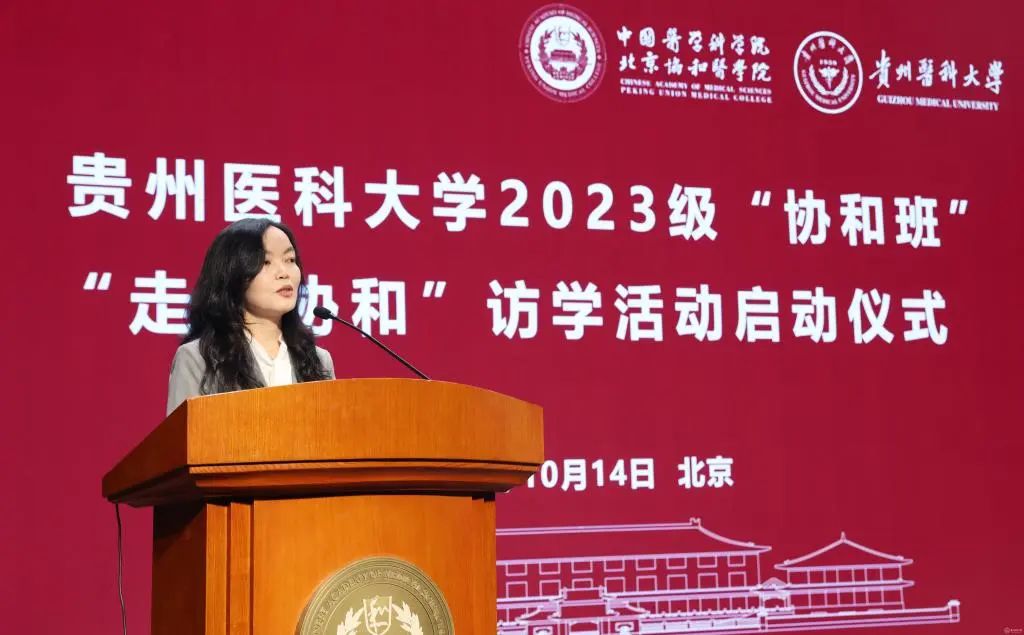 2023级“协和班”学生代表廖兴俐发言,她表示,很荣幸有机会来到北京协和医学院访学,同学们一定会拿出饱满的热情和高度的专注,恪守学习规范,遵循管理章程,努力锤炼本领,拓宽眼界,进一步提升自己的综合素质能力和学科知识水平,不辜负各位老师对研学的辛勤付出和殷切期望。