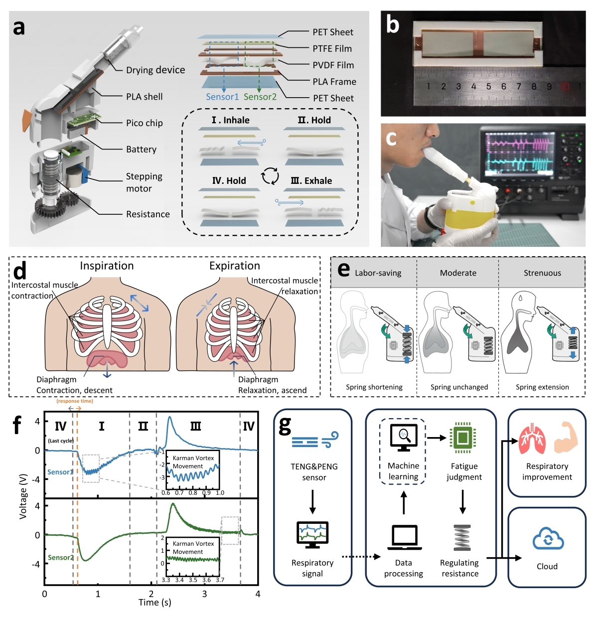 该设备适用于不同的呼吸训练需求,例如改善肺功能、增强运动表现或辅助恢复神经肌肉损伤。其传感器的长期稳定性(5000次循环后信号依旧稳定)和自动化功能,使其在医疗康复和竞技运动领域具有广阔前景。