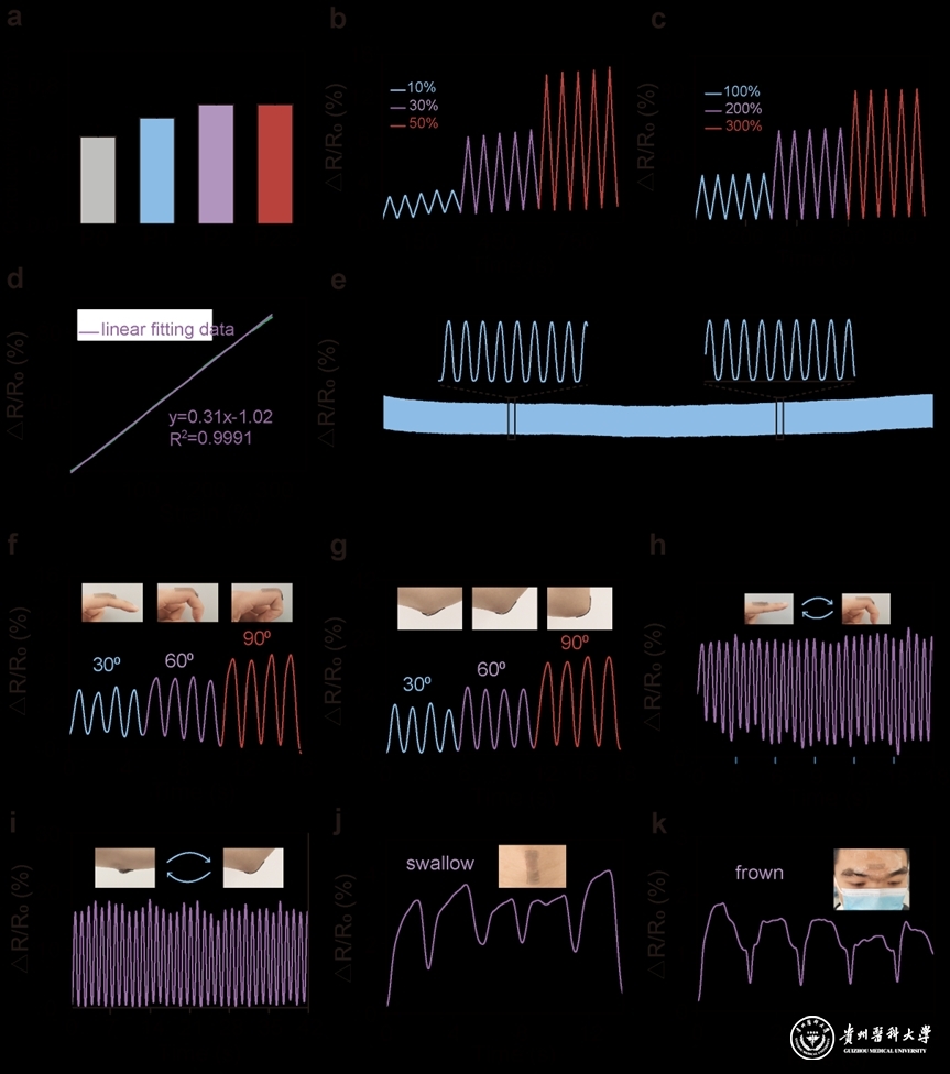 研究团队还展示了这种新型水凝胶作为自供电应变传感器的实际应用,在手指和肘部弯曲角度检测、重复弯曲应变传感实验中表现出色,还能监测吞咽、皱眉等细微动作,适用于长期监测人体运动。这类设备在人体运动监测、人机交互等领域可能起到重要作用。