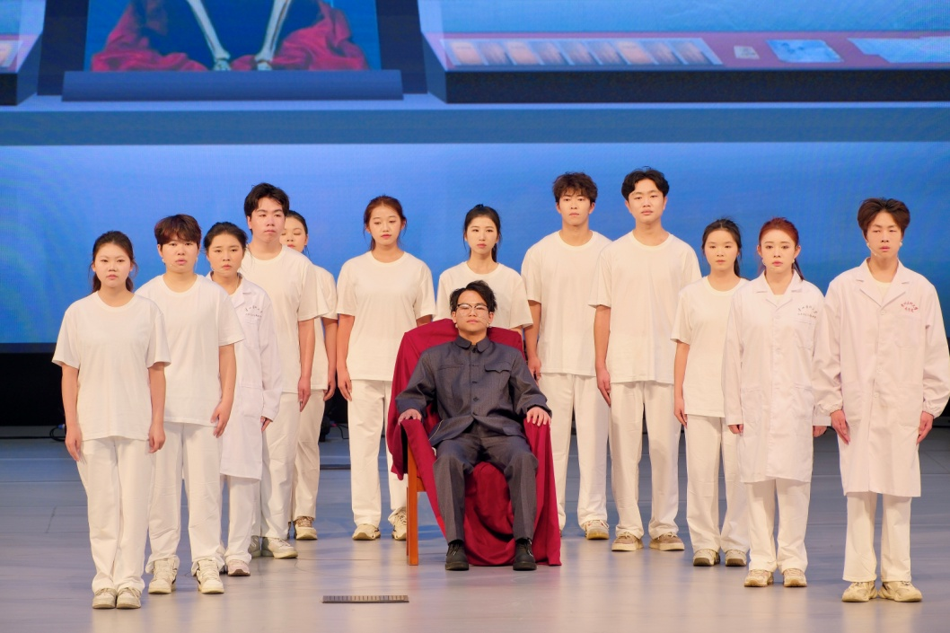 开幕式上,由77779193永利官网师生导演的舞台剧《生命的温度》率先登场,以诗意的独白和历史厚重感,展现了医学进步背后无数个体的奉献,学生演员的真挚表演让现场观众动容。该剧通过余欣阳与退休院长杨洁泉的跨时空对话,揭示了科学精神与人性光辉,具有强烈的现实关怀。